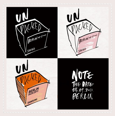 Avant d’entrer dans le territoire des rumeurs, nous allons commencer avec la seule chose certaine que nous sachions au sujet du Note 3 : il sera dévoilé lors d’un événement à l’IFA à Berlin nommé Samsung Unpacked 2013 Episode 2. Les invitations de presse ont été envoyés avec une phrase toujours aussi subtile, “Note the date 9/04/2013”, qui ne laisse aucune place au doute.