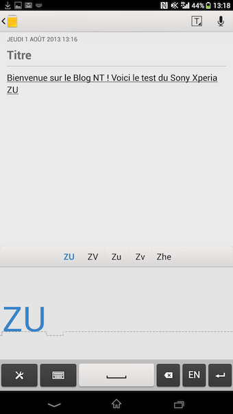 Contrairement à la série des Samsung Galaxy Note, Sony ne vous oblige pas à utiliser un stylet spécifique sur le Xperia Z Ultra. Comme l’écran est très réactif, vous pouvez utiliser votre doigt, un crayon ou un stylet pour commencer à écrire. Selon Sony, l’appareil dispose d’une reconnaissance de l’écriture manuscrite, ce qui signifie que vos notes manuscrites sont lues optiquement et converties en texte. Lors de mes tests, j’ai constaté que la reconnaissance de l’écriture manuscrite était assez précise, et le large écran offre amplement d’espace pour vous amuser !