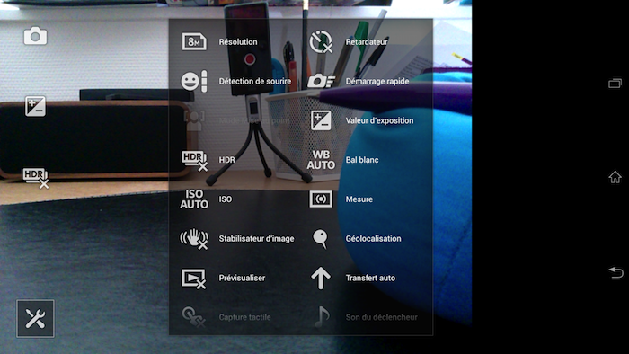Vous trouverez donc rien de nouveau sur le Xperia Z Ultra. Par défaut, la caméra arrière utilise un ratio 16:9, ce qui a pour conséquence de capturer une photo de 5 mégapixels. Le réglage à 8 mégapixels plus n’est possible que dans un format 4:3.