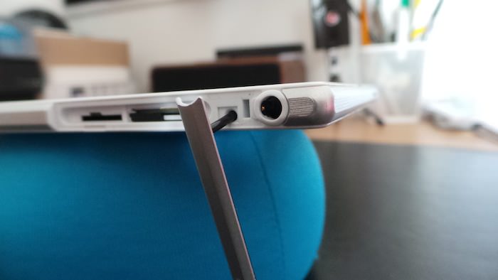 Selon Sony Mobile, il était gênant pour les consommateurs de retirer le cache de la prise casque de chaque fois qu’ils avaient besoin de brancher leurs écouteurs. Par conséquent, l’équipe de conception a amélioré la technologie d’étanchéité et la incorporé dans le Xperia Z Ultra qui ne nécessite aucun cache sur la prise audio. Malheureusement on pourra regretter son emplacement qui va s’avérer difficile à l’usage si vous glissez la phablette dans une poche.