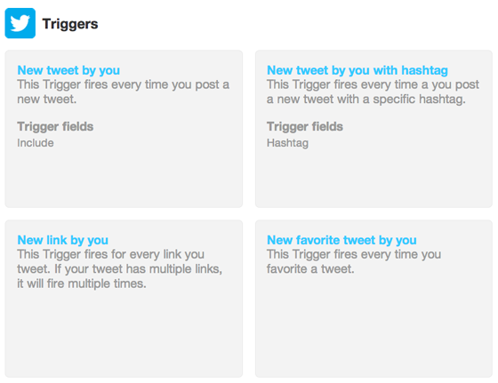 Vous pouvez également régler les choses de sorte que chaque fois que vous tweetez un lien, il apparaîtra dans Tumblr ou ailleurs sur le Web – une bonne façon de se souvenir de tous les bons articles que vous avez partagés. Et vous pouvez configurer les commandes en fonction de vos favoris Twitter, ainsi, et les intégrer dans un tableur ou dans Evernote.