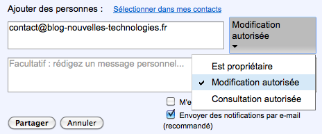 Le processus est exactement le même que le partage de vos documents Google Docs. Vous pouvez choisir entre deux niveaux d’utilisateurs :