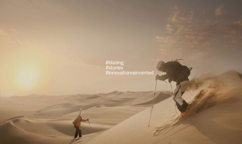 L’invitation montre une scène du désert avec, bizarrement, les skieurs sur les dunes, et dispose de trois hashtags dans le centre. Ni #blazing ou #stories veulent dire grand-chose à ce stade, mais #innovationreinvented est bien connu des fans de Nokia, puisqu’il ressemble fortement au hashtag #zoomreinvented utilisé lorsque la firme a présenté le Lumia 1020.