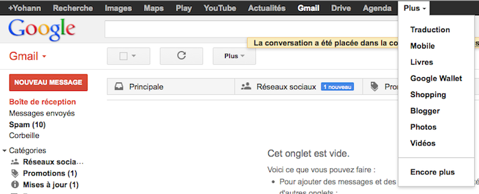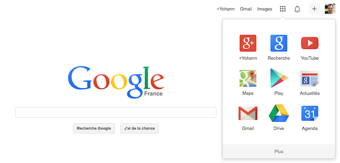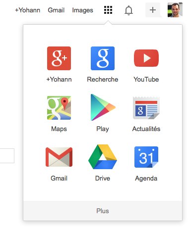 Finie la barre noire qui longe le haut de la fenêtre de votre navigateur, vous allez maintenant être en mesure de trouver tous vos services Google préférés via un menu, sur la droite de l’écran.