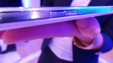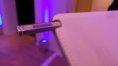 Comme me l’a avoué divers représentants de la firme lors de la soirée, cette coque a vraiment été un point sensible sur les anciens dispositifs, et c’est pourquoi Samsung a vraiment apporté une attention toute particulière sur ce point. Même si cela peut sembler un peu bizarre sur un dispositif plus large de voir une telle matière, la sensation dans la main est nettement plus classe. Il est indéniable que le plastique ne doit plus faire parti de ce monde, du moins dans les dispositifs hauts de gamme.