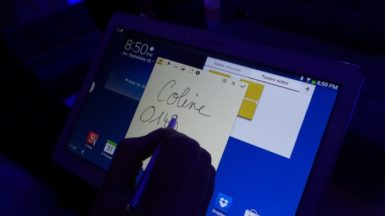La version courte est que Samsung a ajouté un tas de nouvelles fonctionnalités logicielles pour faciliter l’utilisation du S Pen, et à encourager les utilisateurs à tirer le meilleur parti de celui-ci. En retirant le S Pen de son emplacement, vous vous retrouvez avec un menu « Air Command », qui vous permet de choisir entre fonctionnalités et les applications dédiées au stylet. Vous allez ainsi pouvoir prendre une capture d’écran et dessiner sur celle-ci. Une autre vous permet de prendre des notes – par exemple, les numéros de téléphone et les adresses mails seront reconnues comme telles.