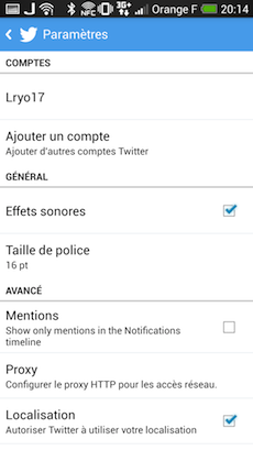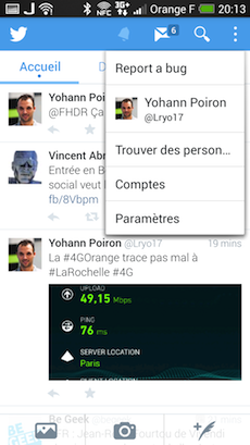 Concernant le lien vers votre profil, il faudra vous rendre dans le menu de l’application pour y avoir accès. Cela peut être un peu pénible pour tous ceux qui veulent contrôler leur flux de tweets, de followers, etc … Ah, et une dernière chose : il n’y a toujours pas d’interface utilisateur dédiée à la tablette.