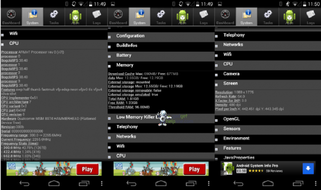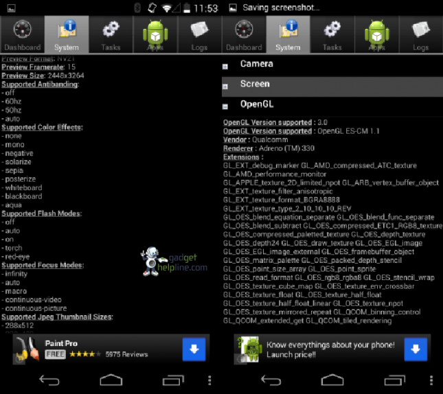 De plus, une rumeur relayée par Android Authority nous présente des screenshots qui auraient récupérés sur le Nexus 5, confirmant les spécifications telles que le Qualcomm MSM 8974, un quadricœurs cadencé à 2,2 GHz, un processeur graphique Adreno 330, couplé à 2 Go de mémoire vive, 16 et 32 Go de mémoire vive, un écran offrant une résolution Full HD (1776 x 1080 pixels) avec une densité de pixels de 444 ppi. Un appareil photo 8 mégapixels avec autofocus arriverait sur la façade arrière.
