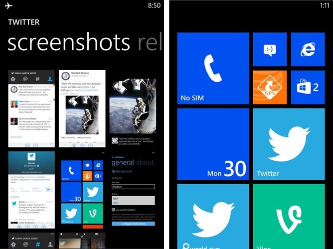 Twitter et Microsoft ont accidentellement – ou non – réalisé un teasing, permettant ainsi à tous les utilisateurs de Windows Phone d’avoir un aperçu de l’application officielle Vine, qui pourrait tout simplement signifier que celle-ci est sur le point d’arriver ! Outre le fait que le réseau de micro-blogging a annoncé des modifications de son client pour Windows Phone 8, apportant un certain nombre de nouveaux éléments intéressants, à commencer par des notifications beaucoup plus complètes sur l’écran d’accueil, ou encore la possibilité d’épingler les recherches sur l’écran d’accueil du téléphone et d’arborer un nouveau thème sombre conçu pour l’utilisation de nuit, il semblerait que la firme ait potentiellement fait une erreur en publiant une capture montrant l’icône de l’application … Vine.