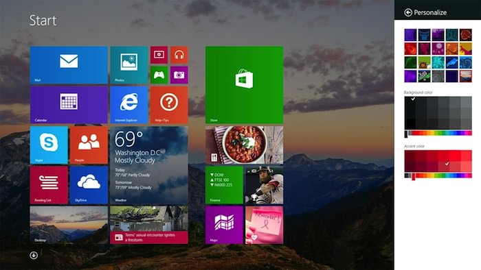 Microsoft a joué la carte de la personnalisation avec Windows 8, mais en réalité, les concepts rigides ont contraint vos choix et votre créativité. Vous voulez mélanger du magenta avec du jaune ? La fashionista à Redmond avait décidé de ne pas vous le permettre. Microsoft s’assagit avec cette nouvelle version, en vous laissant choisir un arrière-plan personnalisé pour l’écran d’accueil, et choisir la couleur que vous voulez combiner, et même organiser vos Tiles de plusieurs manières..
