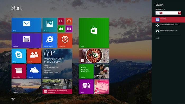 La “recherche universelle” semblait plein de promesses dans Windows 8, mais après avoir utilisé cette dernière, vous deviez précisez ce que vous recherchiez réellement : applications ? fichiers ? réglages ? Non plus. Maintenant, la recherche parcourt tous d’un seul coup, et si votre recherche ne trouve pas ce que vous cherchez localement, alors Bing se chargera de prendre le relais.
