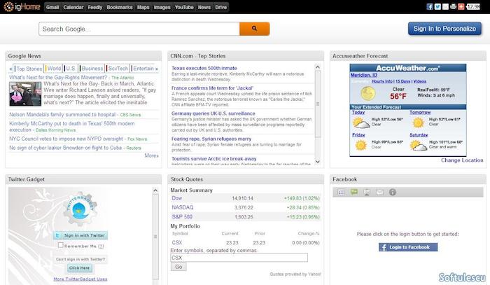 Cet imposteur de iGoogle, igHome, est le meilleur pari pour les passionnés qui cherchent à réduire l’apprentissage de quelque chose de nouveau. Tout comme iGoogle, vous allez retrouver plein de liens vers les services Google en haut. Mais ce n’est pas parfait. Avec beaucoup de ces “gadgets” vous allez remplir votre page, bricolant sur la façon de les placer, et ne fonctionnant pas aussi bien – ou aussi bon – comme les équivalents de iGoogle. Le gadget de Weather.com, par exemple, vous donne seulement une prévision d’une journée avec une tonne d’espace perdu. Même le gadget Gmail a du mal à fonctionner.