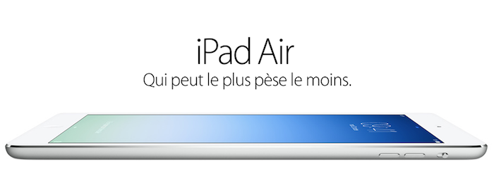 Pour rappel, l’iPad Air est disponible en gris sidéral et argent, des coloris que l’on a vu avec l’iPhone 5S. Les prix débuteront à 489 euros pour le modèle Wi-Fi 16 Go, puis passer à 579 euros pour le modèle 32 Go, 675 euros pour le 64 Go et enfin 765 euros pour le modèle de 128 Go. Si vous voulez une tablette avec la connectivité 4G LTE, alors vous aurez besoin d’ajouter 130 euros à chacun de ces prix.