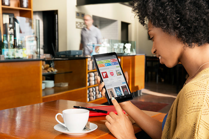 Alors que le site promotionnel android.com de Google a fait peau neuve avec le lancement du Nexus 5, et il semble que Google a déjà utiliser ce dernier pour fournir des indices sur son prochain appareil. Si vous vous dirigez vers la section nommée “applications et divertissement” du nouveau site et faites défiler vers la deuxième grande image, vous verrez une image d’une femme tenant une tablette que nous n’avons jamais vu jusqu’ici.