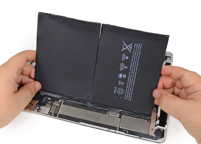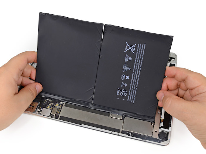Cette batterie a seulement deux cellules, et est évaluée à une capacité de 32,9 Wh, tandis que le dernier iPad – de quatrième génération – embarquait une batterie de trois cellules, avec une capacité de 43 Wh. La nouvelle source d’alimentation au lithium-ion fournit l’énergie nécessaire pour le même écran que sur l’iPad qu’il remplace, ce qui est un écran de 9,7 pouces. Cela signifie que l’efficacité accrue de la batterie vient d’ailleurs, qui est probablement liée à une diminution des ressources nécessaires demandées par chaque composants.