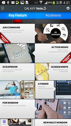 Bien sûr, l’application entière n’est rien de plus qu’une démo conçue pour vous faire réfléchir longuement et sérieusement à passer au Note 3, mais c’est certainement un programme bien pensé et vraiment la chose la plus proche de ce que vous pourriez avoir si vous décidez d’acquérir le Note 3, mais sans mettre réellement la main sur l’appareil.