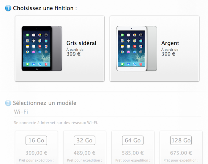 Le tout premier opus de l’iPad Mini restera dans les magasins et est aujourd’hui commercialisé à 299 euros pour le modèle 16 Go en WiFi seulement.
