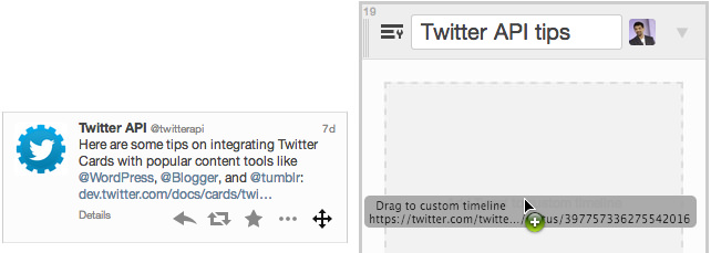 “Vous la nommez, et choisissez les tweets que vous voulez ajouter à cette dernière, que ce soit à la main ou une application utilisant l’API …”, explique Twitter via son blog dédié aux développeurs. “Cela signifie que lorsque vous voulez suivre une conversation concernant un événement ou un sujet tendance sur Twitter, vous avez la possibilité de créer une timeline qui relève pour vous tous les tweets pertinents”, poursuit-il.