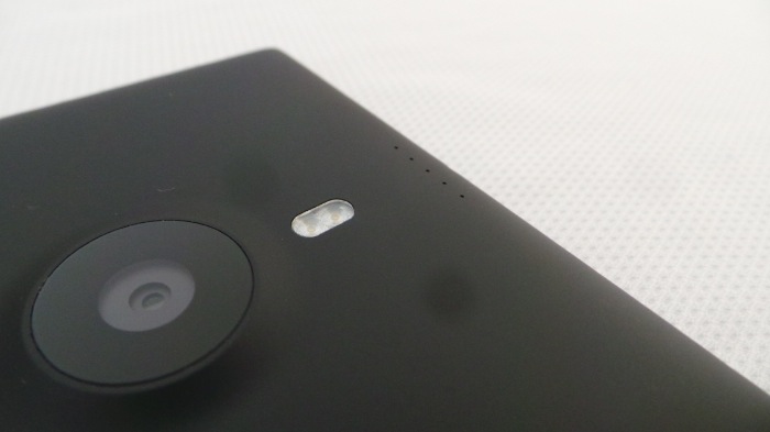 Sur le dos, vous trouverez la caméra PureView de 20 mégapixels, associée à un double flash LED. Tout en bas, la grille du haut parleur. Une puce NFC est également présente sous la coque permettant d’appareiller divers appareils.