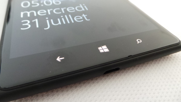Sur le côté droit du Nokia Lumia 1520, de haut en bas, vous trouverez les boutons pour régler le volume, le bouton on/off et un bouton permettant de déclencher l’appareil photo.