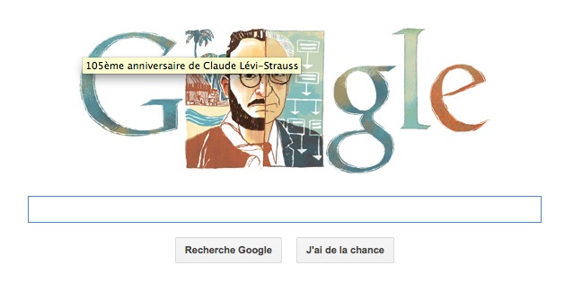 Aujourd’hui comme vous pouvez le voir sur la page de Google, le géant de la recherche célèbre le 105ème anniversaire de la naissance de Claude Lévi-Strauss avec un doodle statique dans lequel les lettres “OO” du logo ont été remplacées par un visage coupé en deux, l’un présentant Lévi-Strauss “jeune”, et l’autre lorsqu’il était plus “âgé”.