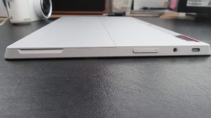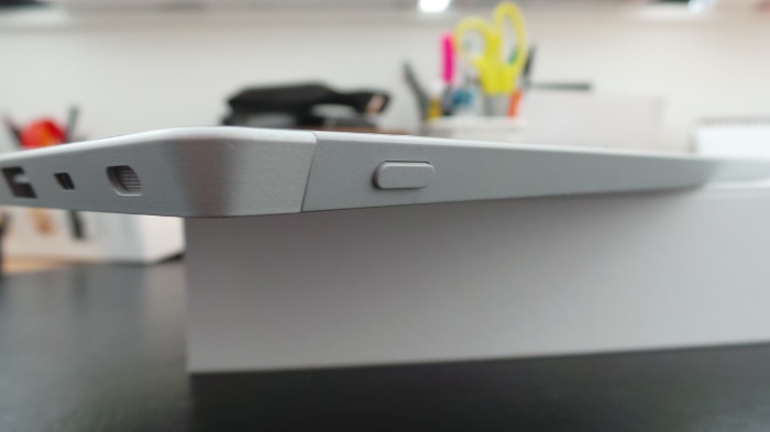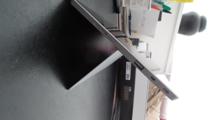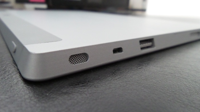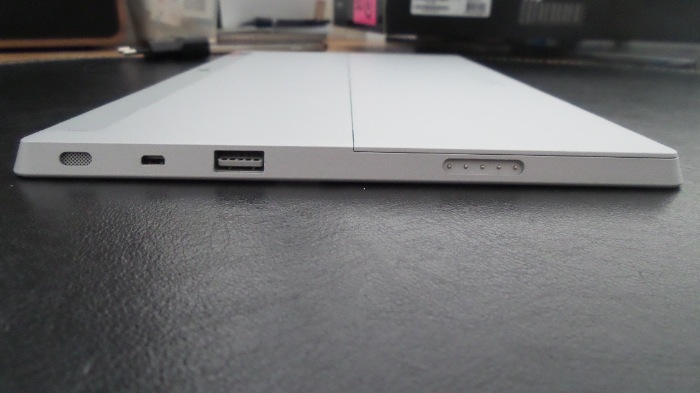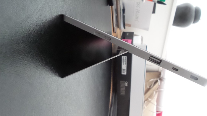 Les boutons et les ports sont minimes, avec seul un bouton pour mettre en marche la tablette et régler le volume, et du côté des ports un seul port USB 3.0, un lecteur de carte micro SD, une prise casque et une sortie vidéo pour un deuxième écran, ainsi que le port spécifique à Microsoft pour clipser un clavier, Type Cover ou Touch Cover complètement la liste.