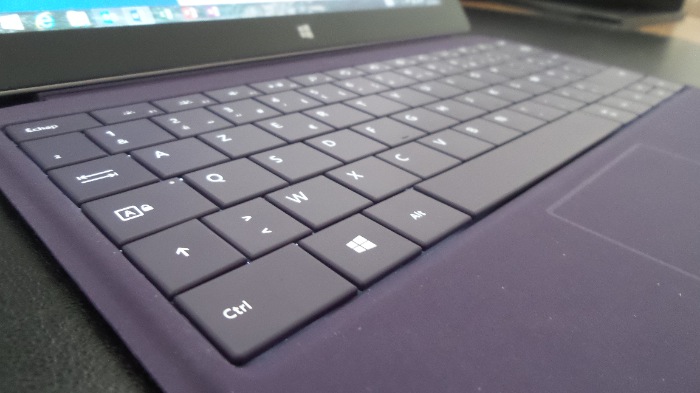 Pour ma part j’ai pu tester la Type Cover 2 commercialisé à 130 euros, qui a des touches discrètes qui sont maintenant rétro-éclairées pour une plus grande souplesse – malgré un manque de rebond pour les touches, mais il est étonnamment utile pour accélérer la frappe comme une traditionnel ordinateur portable. Pour 120 euros vous pouvez également mettre la main sur un Touch Cover 2, qui est plus mince en raison du fait qu’il sacrifie les touches physiques pour du virtuelle – toujours rétroéclairé.