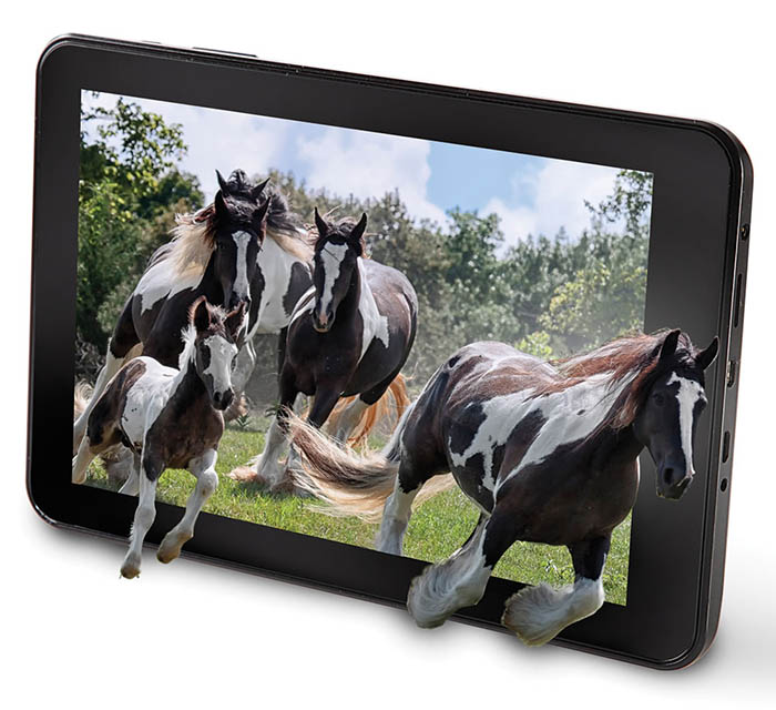 Quoiqu’il en soit, la tablette disponible dans les pages du catalogue de Hammacher Schlemmer, aux côtés d’autres merveilleux produits tels que Flying Motorcycle, ou encore le Golf Cart Hovercraft. Alors que le nom n’est pas aussi accrocheur que ces machines de rêve, le fabricant a tout simplement choisi : “The No Glasses 3D Tablet”. Pourtant, il n’y a pas de confusion sur ce qu’elle permet.