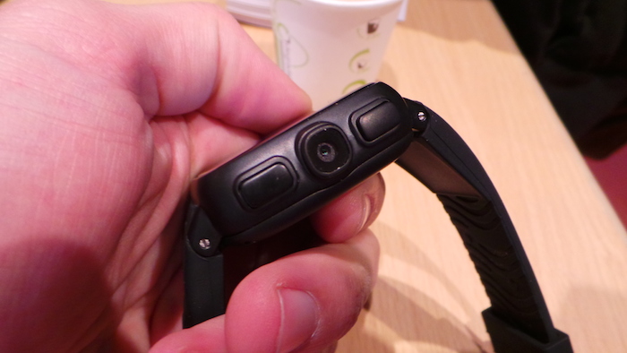 Sur le côté droit de l’appareil, un couple de boutons plus un minuscule appareil photo de 5 mégapixels, tandis que la fente de la carte micro SIM se trouve sur la gauche. Alors que l’on peu se demander pourquoi la caméra n’est pas sur la façade avant, notamment pour les appels vidéo, j’ai eu la réponse sur le fait que celle-ci était davantage utilisé pour des scènes d’action, semblable à ce que propose GoPro, de quoi jouer les véritables espions.