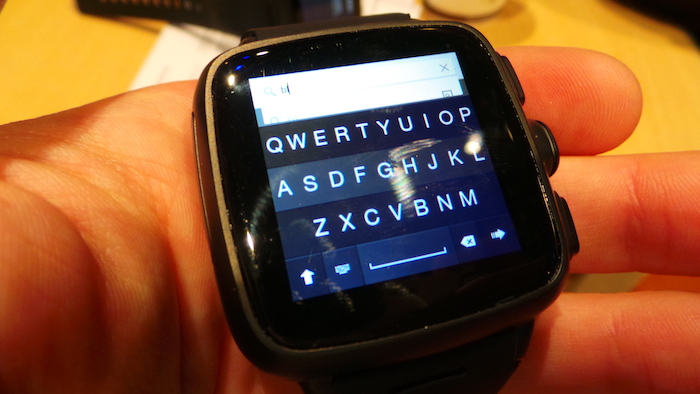 Comme je l’ai mentionné plus haut, ce qui est le plus excitant dans la TrueSmart est son intégration avec le clavier Fleksy, qui est l’un des plus intuitif que j’ai essayé. Pendant le peu de temps que j’ai pu utiliser la montre, j’ai été surpris de voir la façon dont il a réussi à retranscrire mes mots, en phrases cohérentes. Quand il devine le mot le plus proche possible, vous pouvez glisser vers la droite pour confirmer ou faire dérouler une liste de suggestions en surbrillance. J’ai encore des doutes sur le fait de réellement rédiger un contenu quantitatif sur un tel écran, mais vous pourriez probablement l’utiliser pour envoyer et lire des e-mails sans problème.