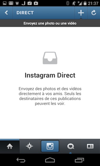 Instagram Direct est accessible via une nouvelle icône dans le coin supérieur droit de l’écran d’accueil, qui une fois cliquée ouvre votre boîte de réception personnelle avec des photos et des vidéos qui ont été envoyées sur votre compte. En outre, quand vous allez capturer un moment avec l’appareil photo dans l’application, vous verrez deux nouvelles options de partage une fois que vous avez appliqué certains filtres : Abonnés et Direct.