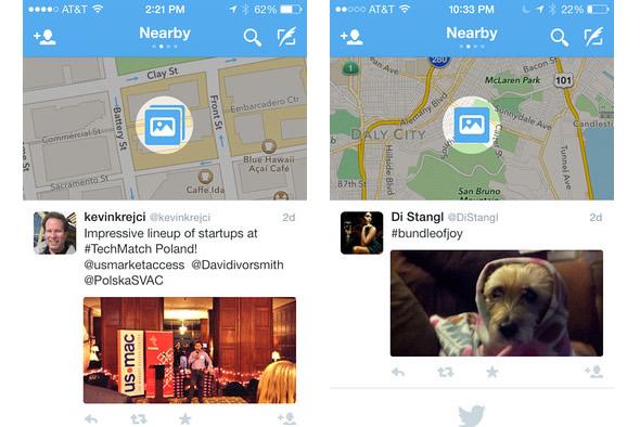 Nommé “Nearby” – pour désigner “Proximité”, les utilisateurs n’auront pas besoin de suivre effectivement un autre utilisateur Twitter afin de lire un tweet ayant une portée locale. Situé en haut de l’interface Twitter, les utilisateurs verront une carte sur l’écran en plus d’un point bleu qui marque l’emplacement général de l’utilisateur qui a posté le tweet. La moitié inférieure de l’écran affiche l’image Twitter du profil de l’utilisateur, le tweet qu’il a écrit ainsi que tout autre graphique ajouté à ce dernier.