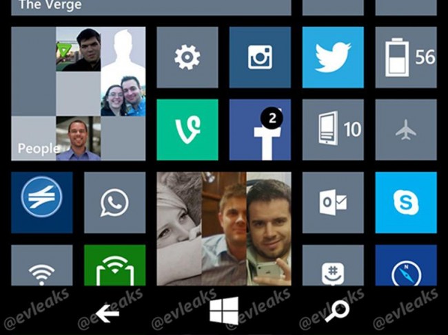 Un screenshot tweeté par notre célèbre @evleaks montre que les boutons dédiés à la recherche, au menu Démarrer ainsi que le retour arrière, se retrouvent aujourd’hui comme étant virtuels, c’est-à-dire, gérés logiciellement contrairement aux boutons capacitifs que l’on retrouve actuellement sur les smartphones Windows Phone.