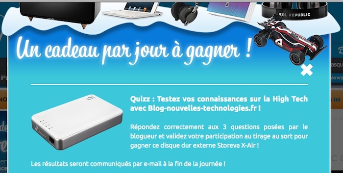 En s’associant à une poignée de sites afin de changer des traditionnels formulaires, nous allons pouvoir vérifier si votre veille et votre culture concernant l’actualité traitée sur le BlogNT est de qualité, et tout ça dans le but de tenter de remporter un très utile disque dur externe Storeva X-Air de 1 To. Un joli cadeau, d’une valeur de 159€.