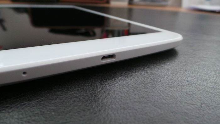 Sur la tranche inférieure, vous retrouverez le traditionnel port micro USB pour recharger ou connecter votre tablette à un ordinateur.