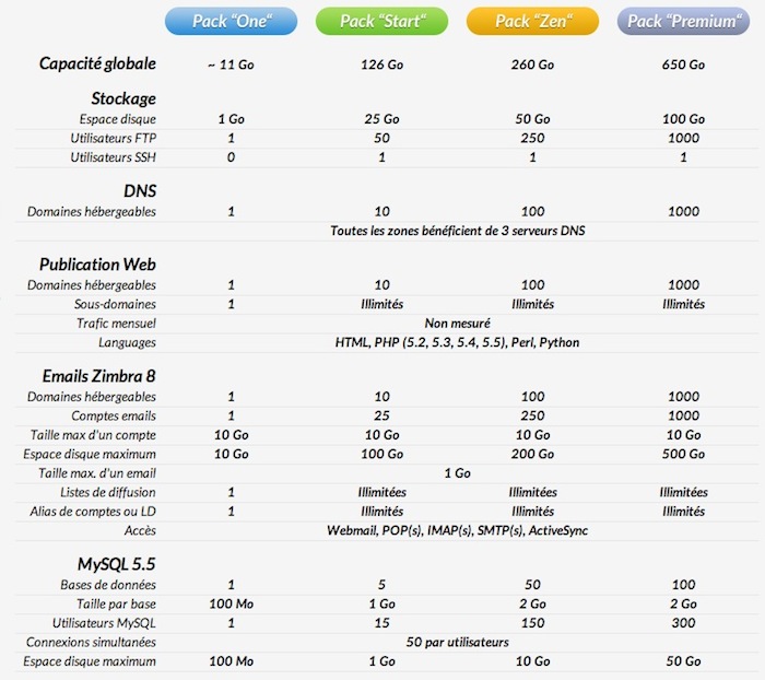 Hébergeur associatif depuis fin 2006, Web4all est réputé pour proposer des hébergements mutualisés très complets et d’excellente qualité. Ces hébergements comprennent entre autre des bases de données MySQL de 1Go sur l’offre Start là où la majorité des hébergeurs à tarifs proches proposent quelques centaines de Mo voir moins de 100 Mo et vous permettrons d’utiliser la majorité des langages les plus courants tels que Php 5.2, 5.3, 5.4, 5.5, Perl, Python….