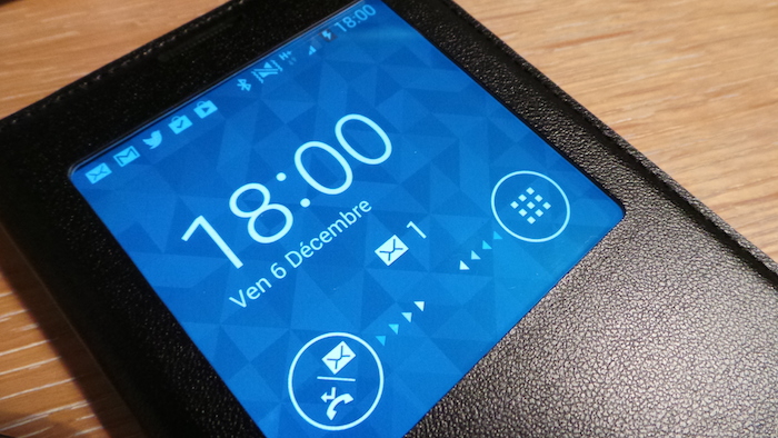 La S-View du Galaxy Note 3 est contrairement à celle que l’on a pu découvrir dans un précédent article pour le LG G2, une coque de remplacement pour la façade arrière de votre Note 3, qui grâce à la fenêtre plastique découpée dans le rabat vous donnera plusieurs avantages, et notamment d’accéder à la caméra, aux notes, de disposer d’une vue des notifications, de répondre aux appels entrants et beaucoup plus, sans ouvrir le capot.