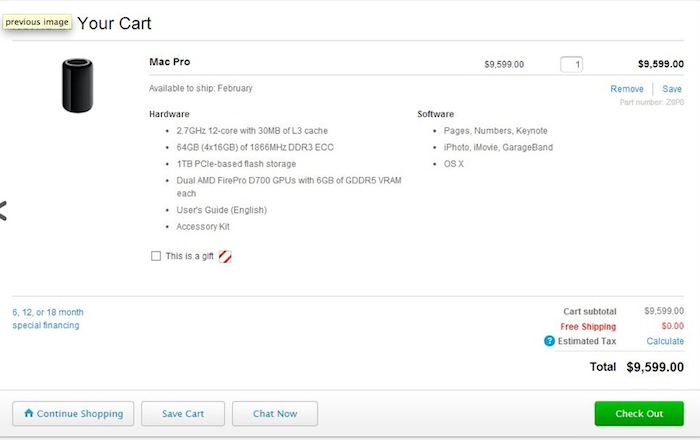 Comme nous l’avons vu dans un précédent article, le Mac Pro le plus cher vous en coûtera 9 599 euros. Au sein de ce dernier, vous disposerez d’un processeur Intel Xeon E5 de douze cœurs cadencé à 2,7 GHz, 64 Go de mémoire vive DDR3, un disque dur SSD de 1 To, et deux cartes graphiques AMD FirePro D700.