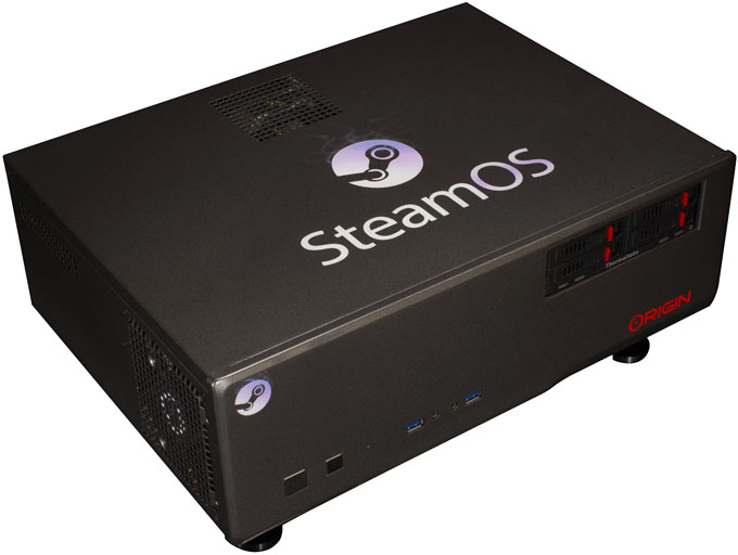 Récemment dévoilé, l’ordinateur de bureau Chronos a été enrôlé pour servir de Steam Machine. Les spécifications sont personnalisables, mais un modèle haut de gamme pourrait disposer d’un processeur Intel Core i7-4770k, deux cartes graphiques Nvidia GTX Titan, et jusqu’à 32 Go de RAM. Divers disques durs mécaniques ou SSD, permettront un total jusqu’à 14 To de stockage interne. Rien sur le prix.