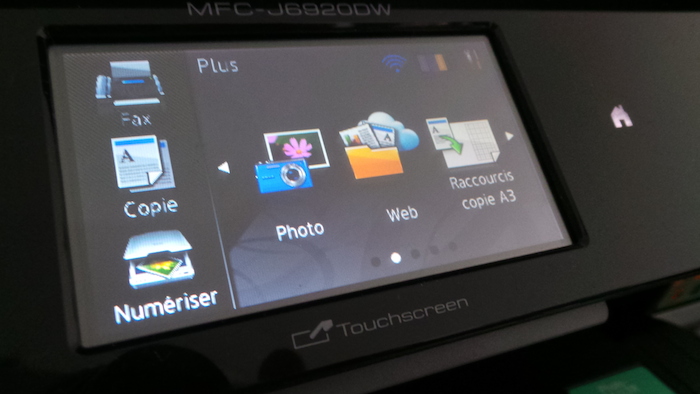 Comme le panneau de contrôle tactile, la Brother a fait disparaître les traditionnels boutons en les échangeant par des contrôles numériques. Sur la MFC-J6920DW, on va donc retrouver un écran tactile de 3,7 pouces avec de simples menus, ce qui vous permet d’imprimer, de copier, de numériser ou d’envoyer un fax à partir d’un PC ou directement depuis le panneau de contrôle…