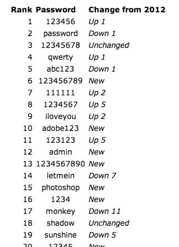 Mais noooooooon, les gens doivent être tous paresseux. Si l’on en croit SplashData, une entreprise qui fabrique des programmes qui gèrent des mots de passe et plus, a révélé sur son blog officiel que “123456” serait le pire mot de passe de l’année 2013, détrônant “password” de son trône. Alors qu’en 2012 et 2013 “password” était à la première place, “123456” était son dauphin.