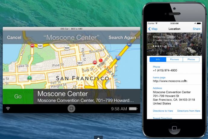 Dans la vidéo ci-dessous, le développeur Steven Troughton-Smith affiche comment iOS fonctionnerait sur un écran offrant une résolution de 800 x 400 pixels, contrairement à de nombreux écrans de navigation trouvés dans les voitures actuelles. Troughton-Smith affirme que cette plateforme sera accessible via iOS 7.0.3 – une version déjà installée sur la plupart des iPhones actuels, et que le système sera compatible avec l’écran tactile, et évolutive pour les écrans plus grands et plus petits. Il suggère également que le système est contrôlé presque entièrement par Siri, ce qui élimine le besoin d’un clavier.