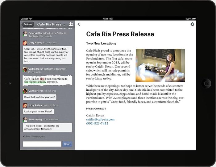 Il y a la possibilité de garder des notes privées si vous souhaitez utiliser l’outil pour des tâches professionnelles et personnelles en même temps, mais c’est dans le travail collaboratif en temps réel que Quip s’avère redoutable. Il y a de petites attentions comme les mentions du style de Twitter, et vous pouvez accéder à des notifications de sorte que vous pouvez garder un oeil sur ceux qui ont vu les changements que vous avez effectués.