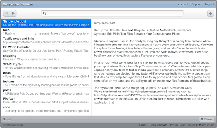 Simplenote est à la hauteur de son nom, et garde les choses très simples en fait. Il s’agit d’une application web, mais des applications mobiles sont également disponibles pour iOS, Android, Kindle et Mac, et est un peu comme Google Keep.