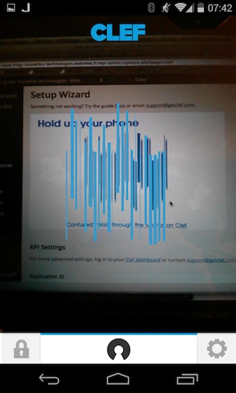 La prochaine étape est juste de pointer votre téléphone (avec l’application Clef) à l’écran et aligner les deux ondulations ensemble. L’application Clef va alors authentifier le plugin et générer un jeu de clés de l’API pour le plugin à utiliser.