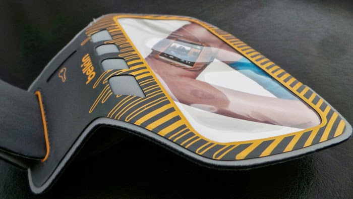 Ce brassard en néoprène léger a une poche dédiée au HTC One, avec une fenêtre tactile grâce à un transparent couvrant l’écran. Il protège la quasi-totalité du dispositif, laissant seulement des ouvertures pour le port du casque sur la partie inférieure et une fente dans la partie supérieure pour l’insertion et le retrait du dispositif.