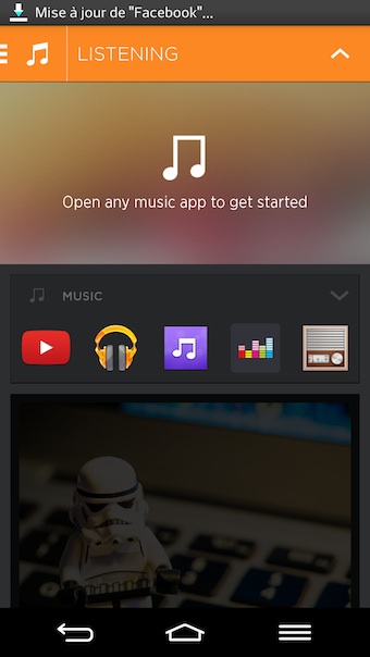 En effet, une fois Aviate mis à jour, vous allez découvrir un nouvel espace pour le lanceur : Listening. Alors que jusqu’ici Aviate modifiait votre écran d’accueil en fonction du contexte, passant par exemple en vert pour “Going Somewhere” lorsque vous êtes en transit, ou en bleu lorsque vous êtes chez vous, l’idée derrière “Listening” est simple, dès que vous branchez vos écouteurs, le lanceur va instantanément vous plonger dans l’univers musical, avec toute votre musique et les applications audio dédiées. Ou, si vous n’avez pas beaucoup d’applications de musique, il peut recommander d’en télécharger certaines sur le Play Store.
