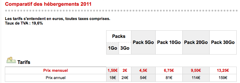 Parmi ces offres et services, elle propose de l’hébergement Web pouvant vous servir pour différents projets (sites internet, galeries photos, forums de discussions, hébergement de vidéos, photos…). Ces prix sont extrêmement bas, et ce, pour permettre à tout le monde de pouvoir créer son site internet et apprendre à utiliser l’outil informatique ! Aucune publicité ni aucun contenu ne sont imposés sur vos sites.