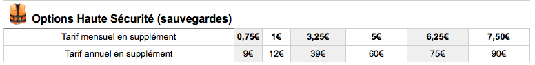 - 1 pack 15 Go + Haute sécurité (189 €) (l’offre est en train de changer, cela devrait devenir l’offre 20Go)