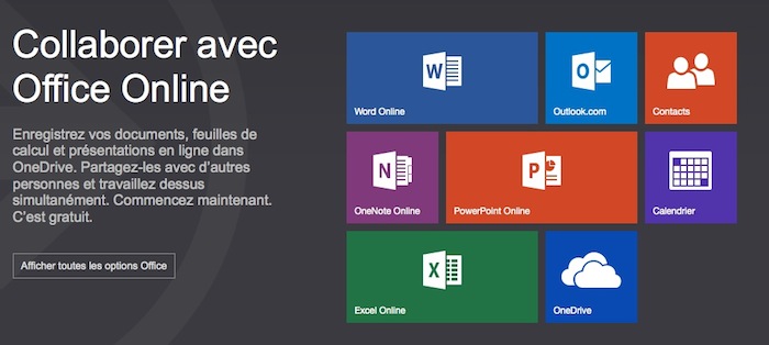 Les applications qui sont disponibles via Office Online comprennent les applications traditionnelles de productivité de Microsoft, à savoir ce que vous attendez disposer avec n’importe quelle version de Microsoft Office, tels que Word, Outlook, Excel et PowerPoint. Office Online propose également OneDrive, OneNote, Contacts et Calendrier.